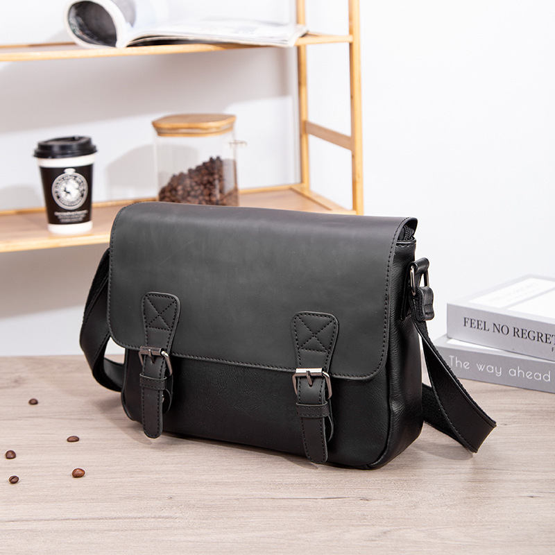Men'S Genuine Crossbody Bag - Sleek Black Versatile Shoulder & Handbag with Adjustable Strap, Multiple Compartments, and Secure Zipper Closure for Casual or Professional Use, Crossbody Purse, Business Casual Bag, Textured Finish
