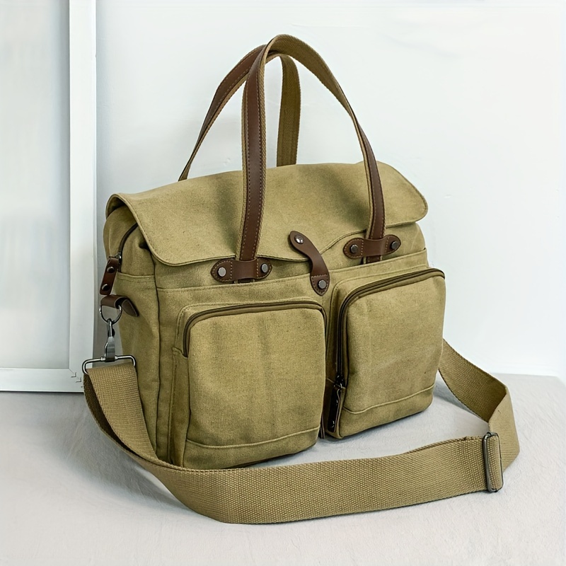 Large Capacity Canvas Multi Pockets Retro Casual Flip Handheld Bag, Fashionable Men's One Shoulder Tote Bag & Durable Backpack for Short-term Travel and Camping