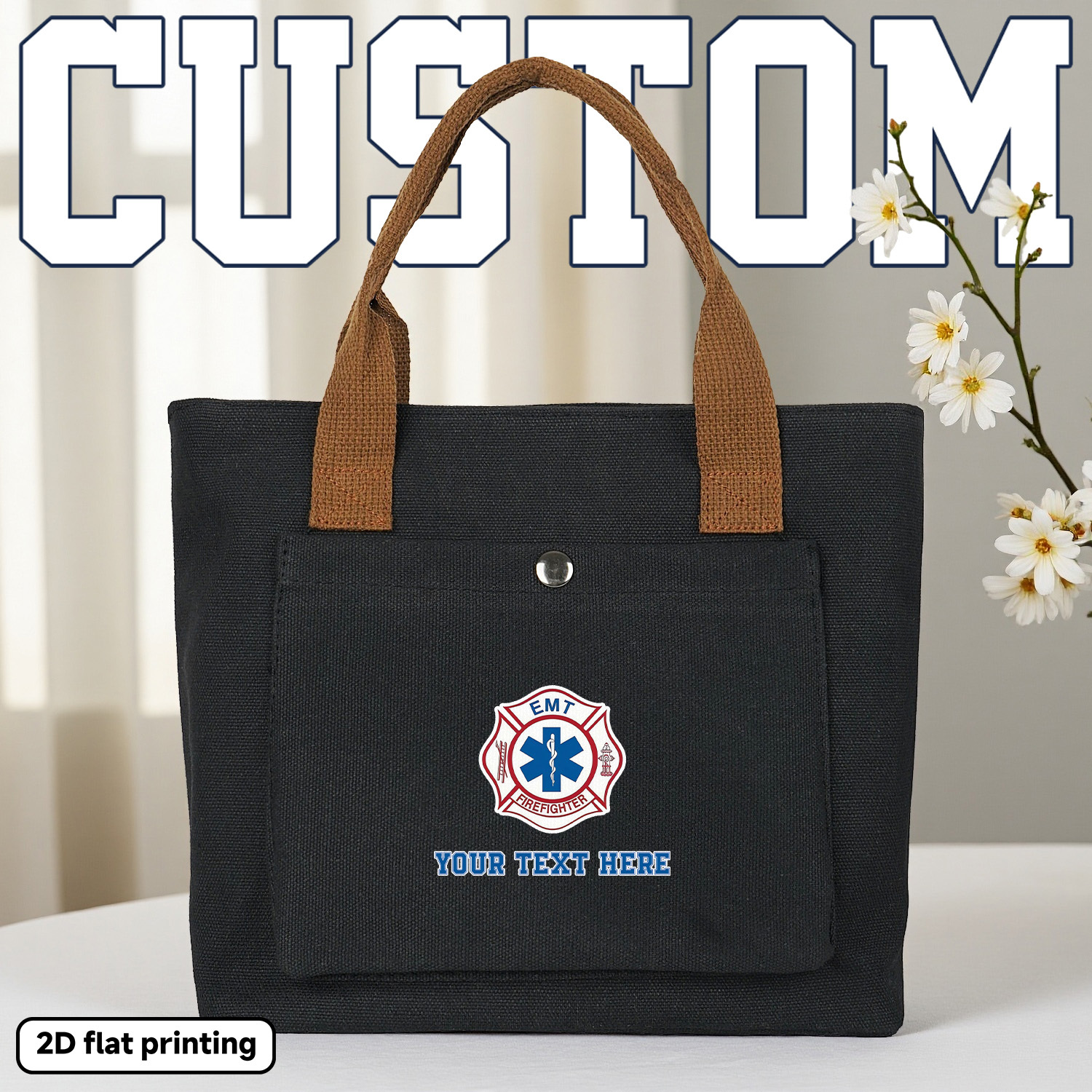 Customizable EMT Firefighter Badge Backpack - Personalized Text/Design, Heavy-Duty Portable Handbag with Top Handle, for First Responders, Medical Professionals