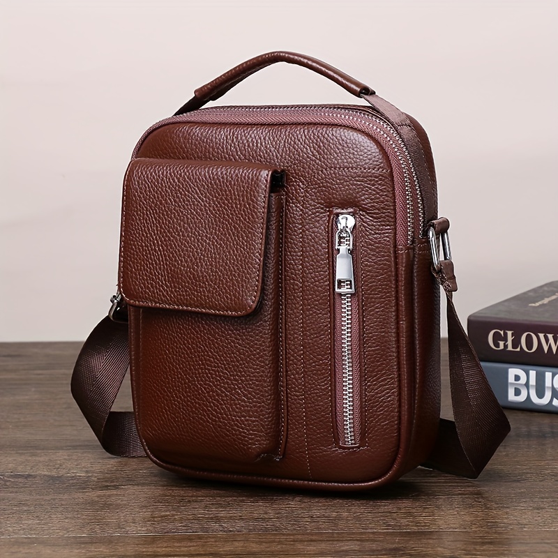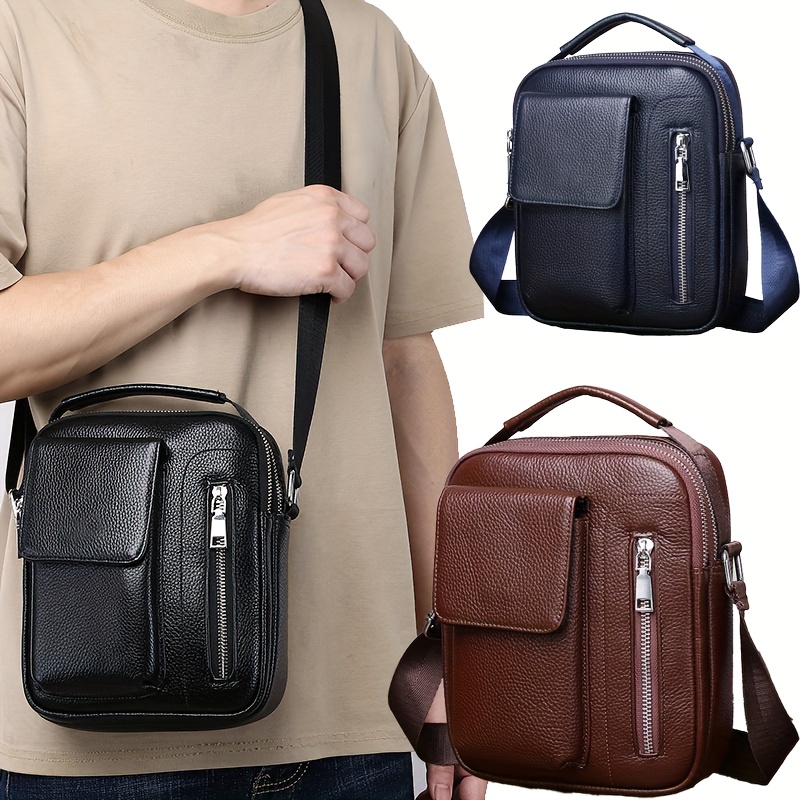 Genuine Leather Men'S Crossbody Bag with Adjustable Strap - Sleek Black Shoulder Bag for Travel, Commuting & Daily Use, Secure Buckle Closure, Perfect Christmas Gift, Travel Bag, Minimalist Design, Durable Construction
