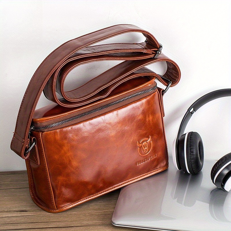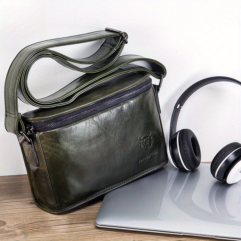 Men's Full-Grain Cowhide Leather Crossbody Bag - Adjustable Strap, Golden-Tone Hardware & Snap Closure, iPad & Phone Compartment - Retro Casual & Business Multifunctional Small Square Shoulder Bag (Black, Durable Everyday Carry)
