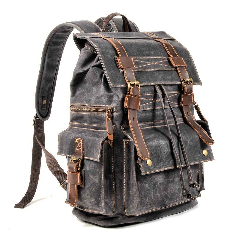 Vintage backpack men's oil wax canvas travel laptop bag outdoor casual crazy horse leather leather hiking bag