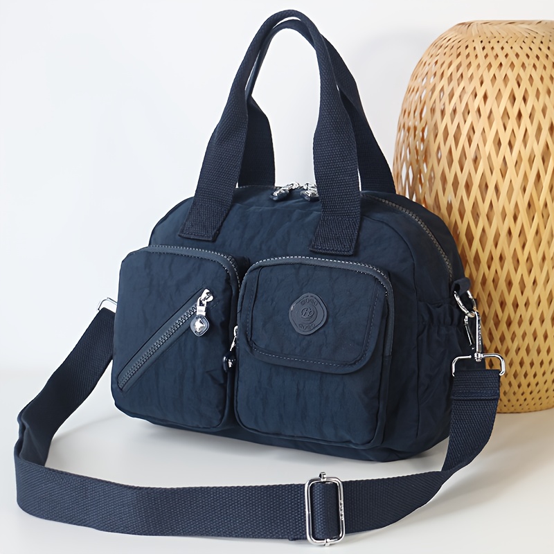 BO Women'S Multi-Pocket Nylon Crossbody Bag - Large Capacity Detachable Shoulder Strap, Multiple Zipper Pockets, Casual Style for Travel & Commuting, Available in Khaki