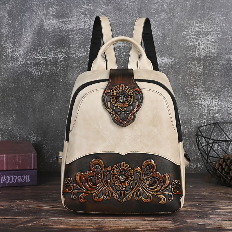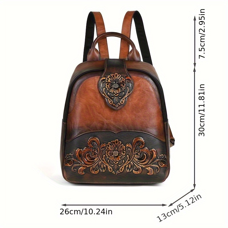 Women's Vintage Western Boho Backpack - Large Capacity Handbag with Floral & Lace-like Paisley Print, Adjustable Shoulder Straps, Golden-Tone Hardware (Coffee/Dark Brown/Tortoiseshell),, Travel