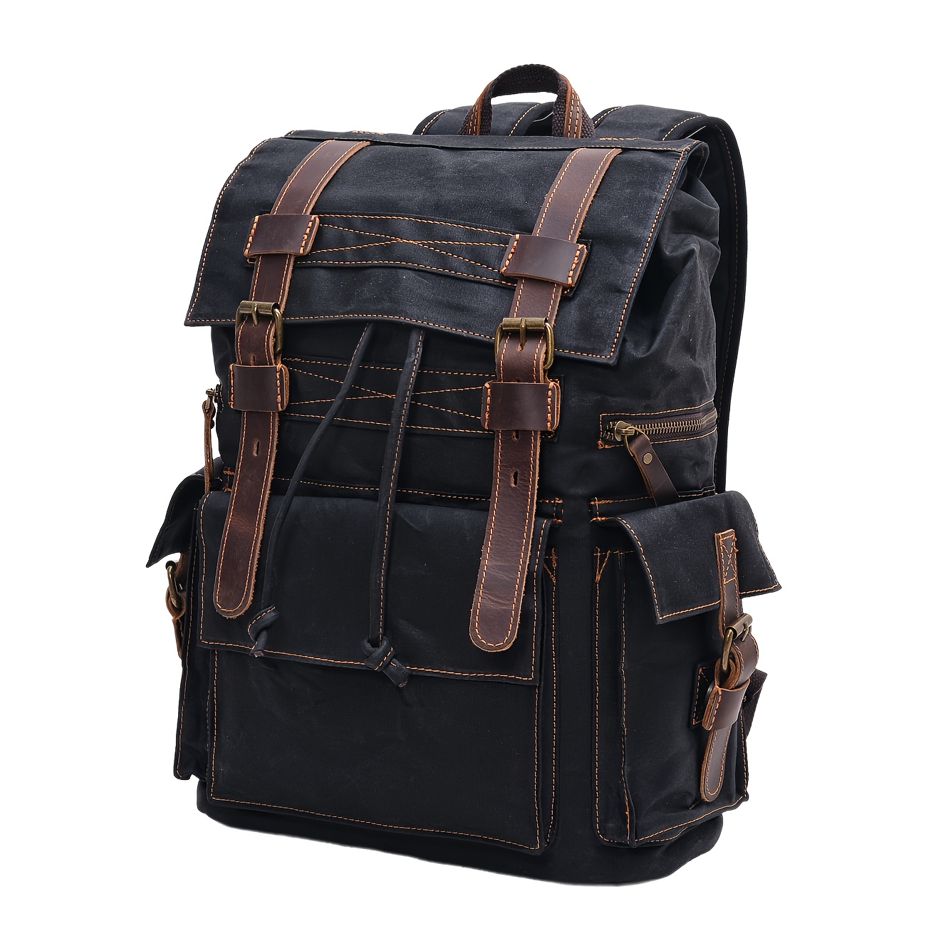 Vintage backpack men's oil wax canvas travel laptop bag outdoor casual crazy horse leather leather hiking bag