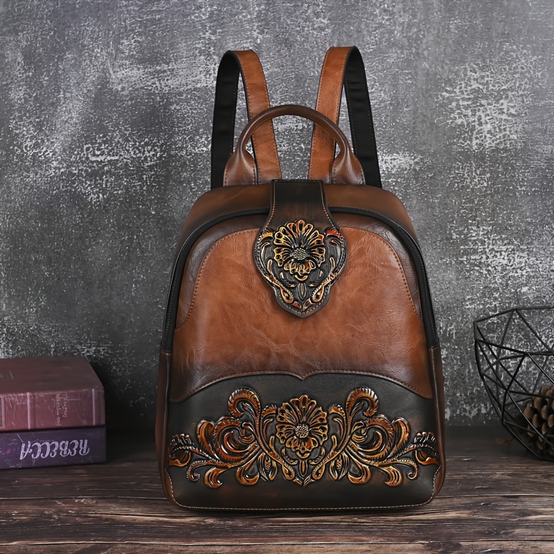 Women's Vintage Western Boho Backpack - Large Capacity Handbag with Floral & Lace-like Paisley Print, Adjustable Shoulder Straps, Golden-Tone Hardware (Coffee/Dark Brown/Tortoiseshell),, Travel